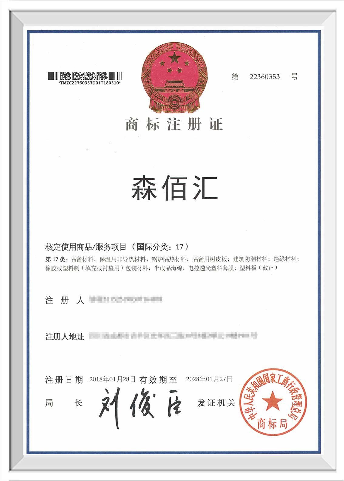 2018年01月28日,“森佰汇”商标已下发至企业。我们将始终秉持科技为本,产品即核心,生态化,多元化发的发展路线,以专业创造价值,用心做好服务,用真情赢得客户信赖!